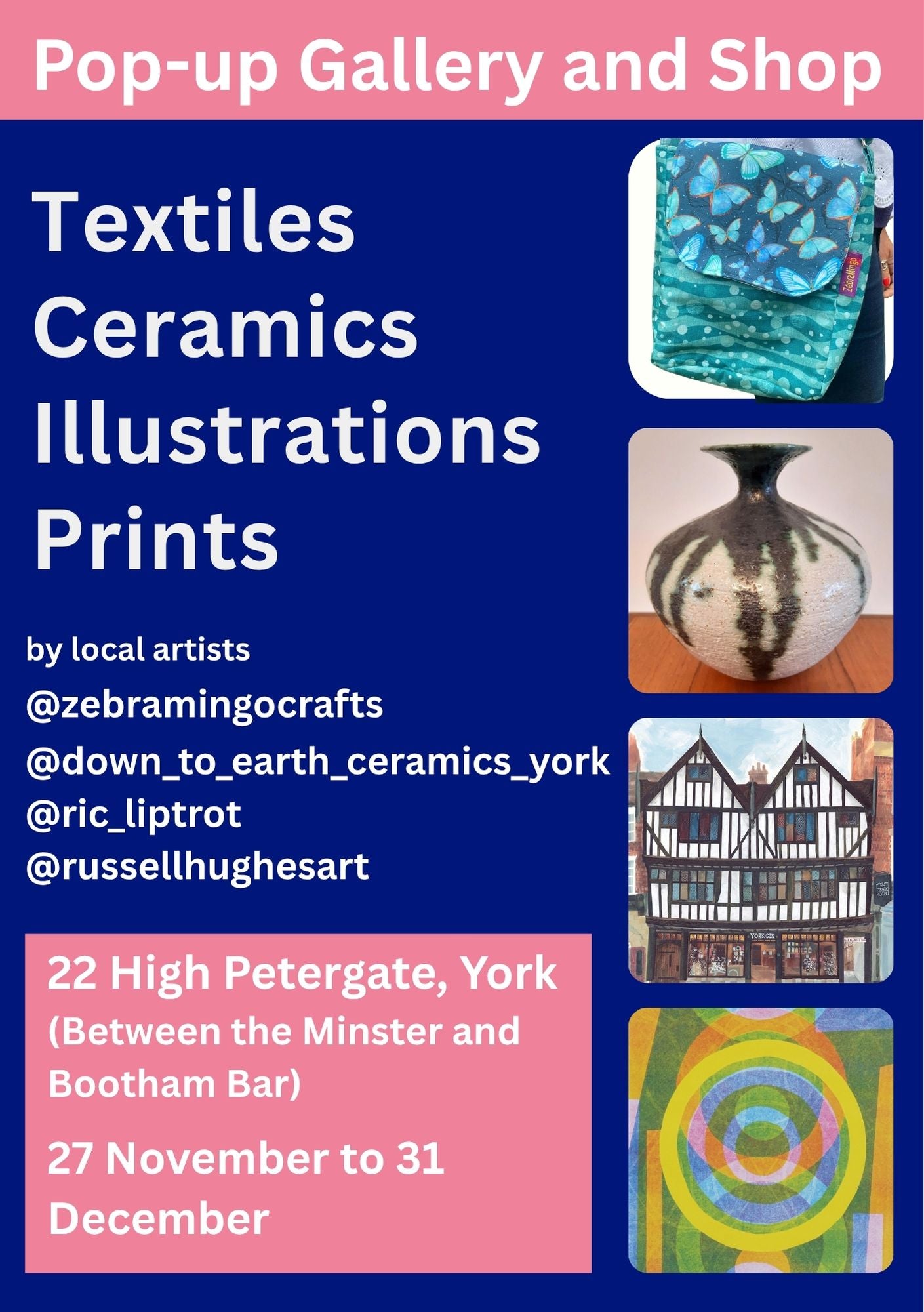 I am delighted to get another opportunity to show my work in the centre of York over the next few weeks. 22 High Petergate is a historic property very close to York Minster and we will be holding a varied and exciting group show, with Zebramingo's textile crafts, Ric Liptrott's architectural illustrations of York, and the beautiful ceramics of Alistair and Anne from Down to Earth Ceramics. We will try to open every day up to Xmas, do come and see us if you can.