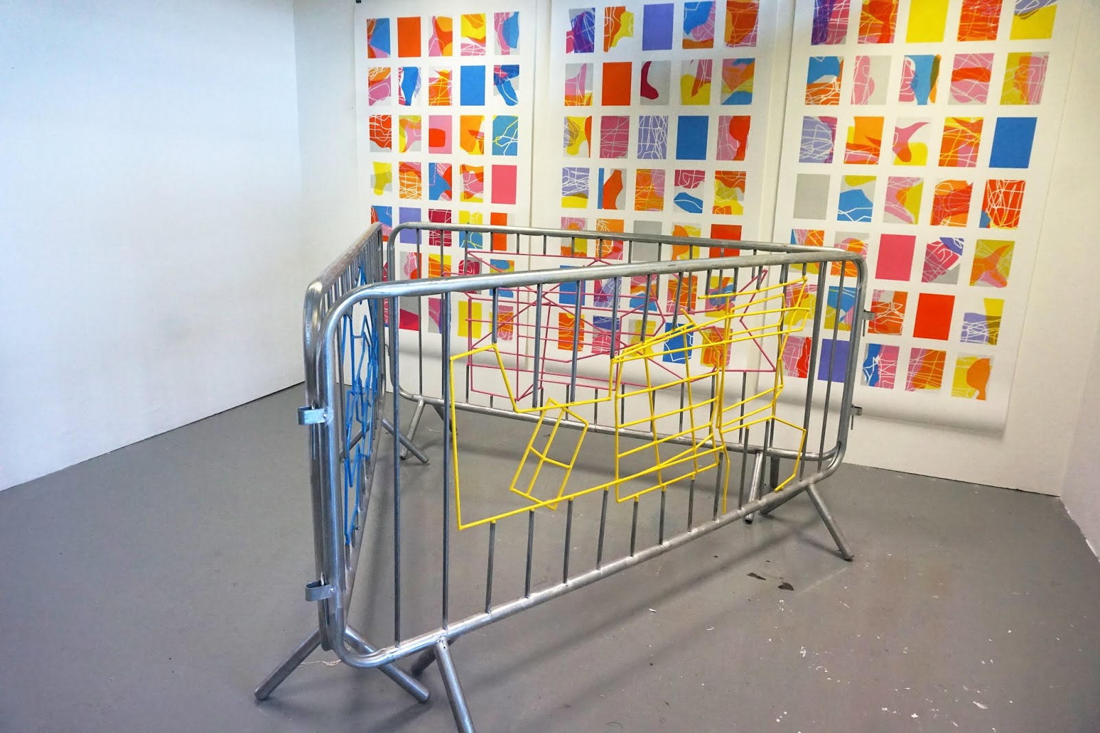 Much of the space in which we live is subject to constant change, which we are expected to accommodate and over which we have little direct control. Spatial change is frequently effected by an infrastructure of control of physical movement, most notably by steel ‘control’ barriers, near ubiquitous objects in our urban landscape. The body of work includes three repurposed steel crowd control barriers, integrating welded steel representations of patterns of movement before and during the public events. Barriers may carry multiple associations for us – they allude to restriction, control, appropriation and protest but also to safety and leisure. Repurposing the barriers and presenting then in an artistic context disrupts their original function and asks the viewer to consider them in more detail, the uses to which they are put and whether our (lack of) response to them is too complicit and accepting.