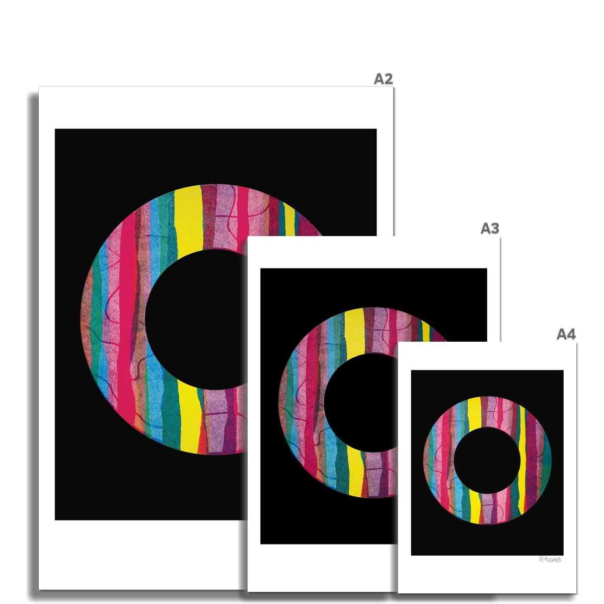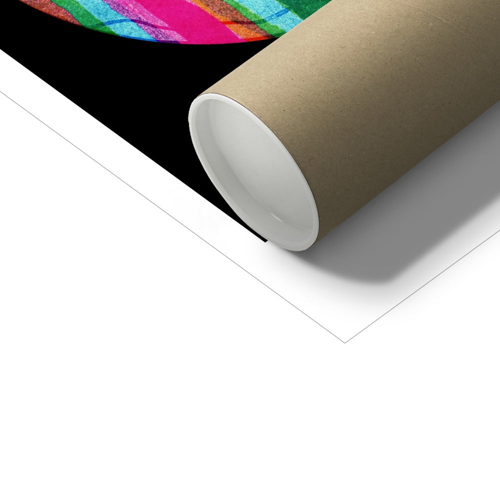 A bright, colourful reproduction of a handmade print, printed on high quality fine art paper using giclée printing methods. The print is unframed.